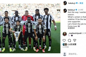 卡盧盧社媒曬出球隊合影寫道:“這不是我想要結(jié)束本賽季的方式。能夠確定的是即使只能在場邊觀戰(zhàn),我也會是球隊助威第一人,讓我們一起完成任務,尤文加油!”
