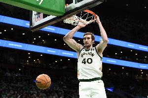 本場比賽,凱爾特人中鋒科內(nèi)特成為奇兵,進(jìn)攻端吃餅一個不丟,防守端尤其亮眼,各種籃下送蓋帽,第三節(jié)5封蓋幫助球隊拉開比分。