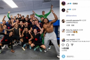 巴薩前鋒萊萬社媒曬出球隊(duì)首發(fā)陣容的照片,以及賽后更衣室的合照,慶祝球隊(duì)奪冠,配文:“冠軍!”