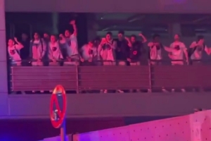 據(jù)科貝電臺(tái)報(bào)道,巴薩全隊(duì)已經(jīng)返回甘伯體育城,球員們來(lái)到陽(yáng)臺(tái)上,與球迷一起慶祝奪冠。