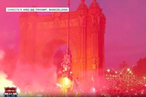 體育資訊05月17日訊 西甲第36輪,巴薩2-0擊敗西班牙人,提前兩輪奪冠。在球隊(duì)的奪冠游行中,場(chǎng)面壯觀,萬人空巷,現(xiàn)場(chǎng)的煙花和焰火點(diǎn)亮了夜空。