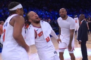 賽后,布倫森在場邊接受采訪時,被麥克布萊德和塔克猛拍屁股。