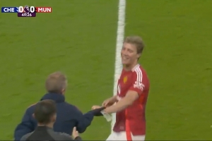 體育資訊05月17日訊 英超第37輪,曼聯(lián)0-1不敵切爾西,比賽第70分鐘,裁判發(fā)現(xiàn)霍伊倫偷偷戴表,后者一臉笑容地將手表交給場邊的工作人員,鏡頭給到主帥阿莫林,他面色鐵青。