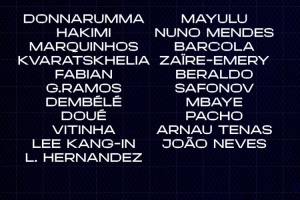 前鋒:克瓦拉茨赫利亞、貢薩洛-拉莫斯、登貝萊、杜埃、巴爾科拉、姆巴耶