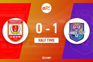 上半場比賽結束,長春亞泰0-1天津津門虎。