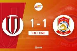 傷停補時5分鐘。上半場比賽結(jié)束,成都蓉城1-1青島西海岸。