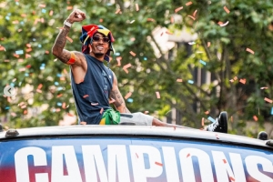 本賽季,巴薩在主帥弗里克的帶領(lǐng)下贏得西甲、國(guó)王杯、西超杯三項(xiàng)賽事的冠軍,拉菲尼亞在社交媒體上曬出了球隊(duì)乘坐大巴游行的照片。