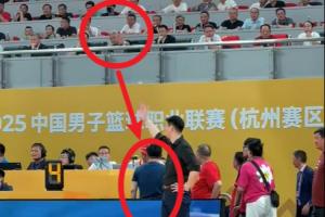 比賽第四節(jié),廣廈老板樓明沖向技術(shù)臺(tái)暴怒不滿(mǎn),并不斷鼓動(dòng)現(xiàn)場(chǎng)觀(guān)眾起哄??磁_(tái)上的中國(guó)籃協(xié)副主席徐濟(jì)成一直示意讓他冷靜?,F(xiàn)場(chǎng)球迷大喊黑哨。