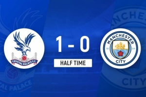 上半場傷停補時3分鐘,半場結(jié)束,曼城暫0-1水晶宮。