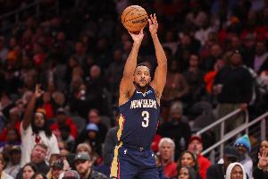 鵜鶘球員麥科勒姆上半場手感火熱,尤其是三分線外準(zhǔn)心相當(dāng)不錯。他8投5中,其中三分4中3,罰球2中2,得到15分2籃板5助攻1搶斷1蓋帽。