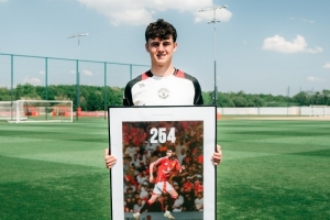 體育資訊5月18日訊 弗雷德里克森成為青訓(xùn)學(xué)院第254位在曼聯(lián)一線隊出場的球員,他獲贈紀念相框。