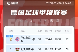 德甲:拜仁,34輪進(jìn)99球(收官)