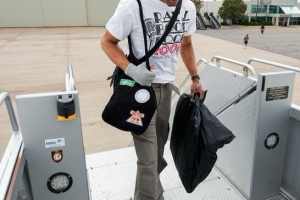 體育資訊5月18日訊 今日美媒Noweez曬出威少登機(jī)前往客場(chǎng)的照片,他帶著手套。