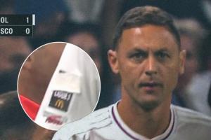 體育資訊05月18日訊 里昂中場內(nèi)馬尼亞-馬蒂奇在昨晚里昂對陣昂熱的比賽中,在袖子上遮住了反恐同標志。