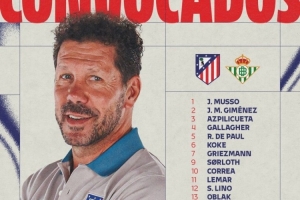 體育資訊5月18日訊 北京時間明天凌晨1點,馬競將在西甲第37輪比賽中主場對陣貝蒂斯,馬競公布了此役的球員名單,阿爾瓦雷斯、格列茲曼、索爾洛特在列,巴里奧斯缺席。