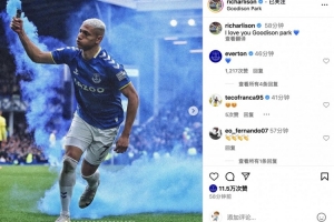 體育資訊5月18日訊 熱刺前鋒理查利森曾效力埃弗頓4年,在老東家古迪遜公園留下過許多美好回憶。他剛剛更新了社交媒體曬照告別古迪遜公園。