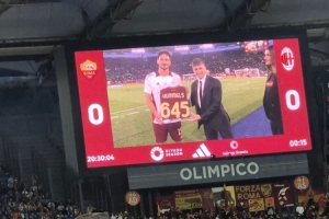 羅馬36歲中衛(wèi)胡梅爾斯將在本賽季結(jié)束后退役,此役賽前羅馬向他頒發(fā)職業(yè)生涯出戰(zhàn)645場俱樂部比賽紀(jì)念球衣。