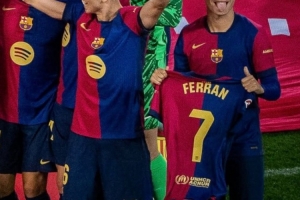 體育資訊5月19日訊 費蘭由于接受闌尾炎手術(shù)而未能參加球隊西甲奪冠頒獎典禮,佩德里在頒獎儀式上一直舉著費蘭的球員。