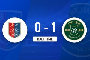 第22分鐘,浙江隊(duì)右路進(jìn)攻,孫國(guó)文回做姚均晟,后者送出傳中到禁區(qū),中路陶強(qiáng)龍凌空搶點(diǎn),門將下地?fù)涑龅撌?,門前王鈺棟輕松補(bǔ)射空門入網(wǎng),浙江1-0領(lǐng)先↓