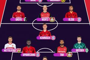體育資訊5月20日訊 OPTA公布了本賽季德甲的最佳陣容,拜仁四名球員入選,人數(shù)最多。