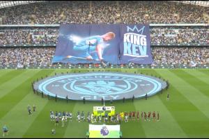 體育資訊05月21日訊 曼城vs伯恩茅斯賽前,曼城賽前看臺(tái)打出致敬德布勞內(nèi)的Tifo,今天是德布勞內(nèi)的主場(chǎng)謝幕戰(zhàn)!