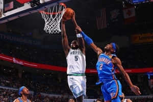 體育資訊5月21日訊 NBA季后賽西部決賽G1,森林狼半場48-44領(lǐng)先雷霆。