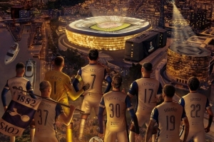 熱刺官方社媒發(fā)布了為此役制作的海報,內(nèi)容為孫興慜、羅梅羅、本坦庫爾、維卡里奧、索蘭克等熱刺球員遠眺圣馬梅斯球場。