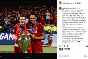 體育資訊5月21日訊 利物浦邊衛(wèi)羅伯遜更新社媒動態(tài),與今夏離隊的阿諾德告別。