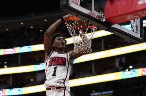 阿門-湯普森出戰(zhàn)41分鐘,投籃15中7,三分3中1,罰球7中4,拿到19分13籃板(4前場)4助攻2搶斷5蓋帽,并且0犯規(guī)。
