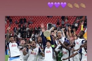 賽后熱刺舊將阿里在社交媒體上分享了熱刺球員高舉獎(jiǎng)杯的照片,并配上了愛心和掌聲的表情。