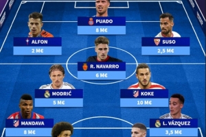 中場:莫德里奇(皇馬,500萬歐元)、納瓦羅(馬洛卡,600萬歐元)、科克(馬競,1000萬歐元)