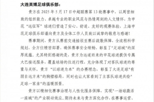 由衷感謝大連英博足球俱樂部在中超聯(lián)賽第13輪比賽中,為申花遠(yuǎn)征軍球迷提供的熱情周到服務(wù)以及營造的優(yōu)質(zhì)賽事體驗。歡迎廣大大連球迷在十月來上海觀賽,期待在未來的中超賽場,我們共同為球迷奉獻(xiàn)更多精彩比賽! ???