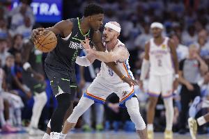 愛德華茲上一場13次出手僅得到18份,盡管他在第二場比賽的出手次數(shù)翻倍,拿下32分,但本隊依然輸球。雷霆輪流派多名防守球員盯防愛德華茲,包括剛?cè)脒x最佳防守陣容的多特和此前入選最佳防陣的卡魯索。