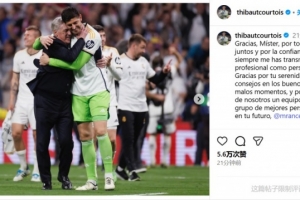 體育資訊5月23日訊 西甲收官戰(zhàn)對(duì)陣皇家社會(huì),將是安切洛蒂執(zhí)教皇馬的最后一場(chǎng)比賽。賽前,皇馬門將庫爾圖瓦在社交媒體上向這位傳奇主帥致敬。