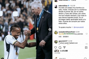 米利唐更新社交媒體曬照發(fā)文告別安切洛蒂。