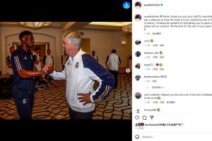瓊阿梅尼更新社交媒體曬照發(fā)公開信告別安切洛蒂。