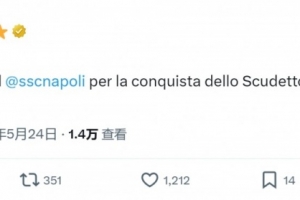 落后那不勒斯1分排名第二位的國米社媒發(fā)文,向那不勒斯表示祝賀,國米官方社媒寫道:“祝賀那不勒斯贏得意甲冠軍?!?/p>