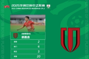體育資訊5月24日訊 梅開(kāi)二度的成都蓉城B隊(duì)球員顧嘉逸當(dāng)選中乙聯(lián)賽第10輪最佳球員。