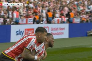 體育資訊05月24日訊 2024-25賽季英冠升級(jí)附加決賽,謝菲爾德聯(lián)與桑德蘭爭(zhēng)奪最后一個(gè)英超席位。比賽第24分鐘,謝菲聯(lián)破門取得1-0領(lǐng)先!哈默精妙外腳背分球,泰爾斯-坎貝爾挑射破門。
