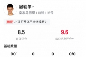 體育資訊5月25日訊 西甲第38輪,皇馬2-0皇家社會(huì)。本場(chǎng)比賽,居勒爾首發(fā)出戰(zhàn),1射門1射正,2次過(guò)人成功,送出3次關(guān)鍵傳球,還有3次搶斷,評(píng)分8.5全場(chǎng)最高。