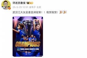 體育資訊5月25日訊 今天,詹俊更新社媒,祝賀武漢車谷江大女足問鼎女足亞冠冠軍。