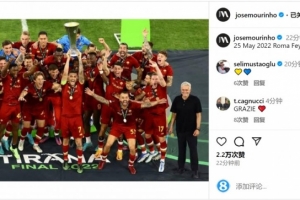 體育資訊5月25日訊 穆里尼奧更新社媒動態(tài),回顧2022年帶領(lǐng)羅馬問鼎歐協(xié)聯(lián)。