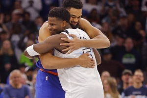 本場比賽唐斯出戰(zhàn)33分鐘,投籃17中8,三分7中3,罰球6中5,砍下24分15籃板1助攻,其中末節(jié)獨(dú)得20分8籃板。