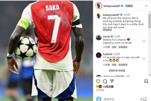阿森納前鋒薩卡更新社媒動態(tài),曬出自己的背影照片,并寫道:“我們都知道自己的使命,我們正在努力實現(xiàn)這家俱樂部許久未見的成就,我們的時代終將到來?!?/p>