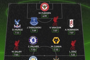 后衛(wèi):穆尼奧斯(水晶宮)、塔科夫斯基(埃弗頓)、范迪克(利物浦)、羅賓遜(富勒姆)
