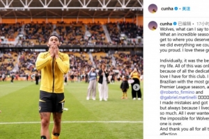 體育資訊5月27日訊 狼隊球員庫尼亞發(fā)文,總結(jié)本賽季。