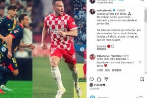 體育資訊5月27日訊 阿圖爾更新社媒動態(tài),感謝赫羅納俱樂部。