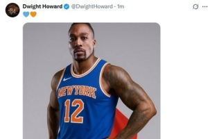 賽后,前NBA球員霍華德曬出自己身穿尼克斯球衣的PS照,并配上尼克斯顏色的心形表情“????”