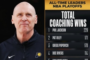 這樣一來(lái),卡萊爾斬獲個(gè)人季后賽執(zhí)教生涯第82勝,超越凱爾特人名宿KC-瓊斯,獨(dú)享歷史第10位。