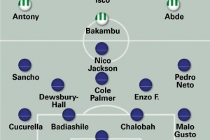 替補(bǔ):桑切斯、伯格斯特倫、里斯-詹姆斯、阿達(dá)拉比奧尤、科爾維爾、阿奇姆彭、凱塞多、姆赫卡、安特維、馬杜埃凱、恩昆庫(kù)、沃爾什、喬治